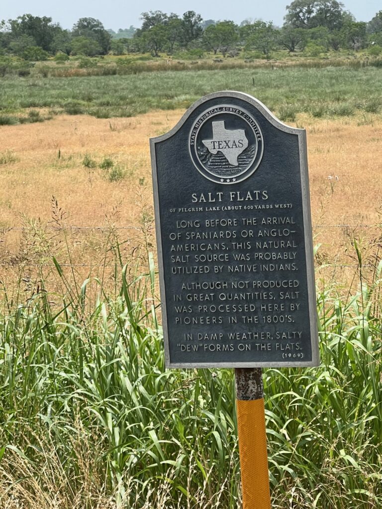There’s not much history I can find. When I google Salt Flats in Texas, I get a lot of information on La Sal del Ray and Salt Flat, TX in the Guadalupe Mountains, which are both now on my list of places to visit eventually. So for now, we just know that there were the Salt Flats of Pilgrim Lake. The marker is located off of FM 1116 near Smiley (between Smiley and Gonzales), near one of my rigs back in the day, and I passed it time after time without stopping until I finally did May 7, 2024.